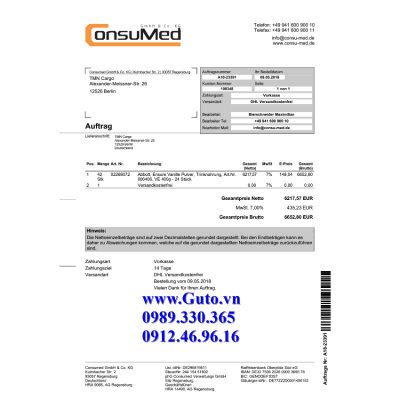Nhận nhập buôn và bán lẻ sữa Ensure Vanille