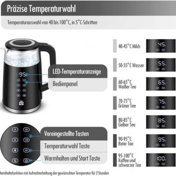 - Tính năng đặc biệt : có thể lựa chọn nhiệt độ trong khoảng 40-100 ° C với mức tăng 5° C.