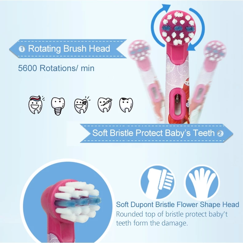 - Bàn chải Oral-B Stages Power cho trẻ em từ 3 tuổi trở lên đặc biệt thích hợp dành cho trẻ em sử dụng pin.