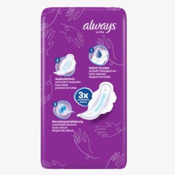 Băng vệ sinh Always Ultra có công nghệ trung hòa mùi hôi giúp khóa mùi thay vì chỉ che đậy chúng. Mặc dù miếng BVS chỉ mỏng 3 mm, nhưng chúng mang lại sự thoải mái tuyệt vời và sự bảo vệ đáng tin cậy trong kỳ kinh nguyệt. Hệ thống Flex & Fit giữ miếng đệm ở vị trí cần thiết và thích ứng với chuyển động của bạn.