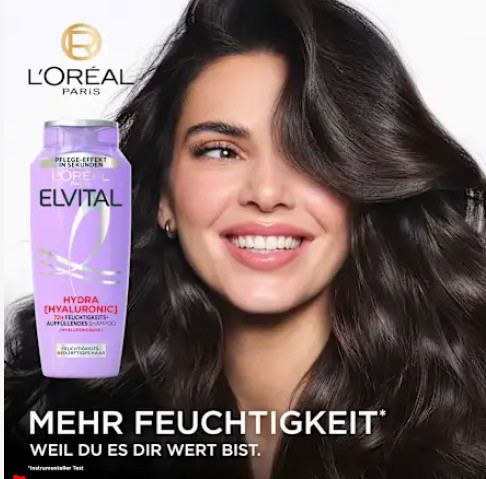 Dầu gội L’Oréal Paris Elvital Hydra Hyaluronic cung cấp độ ẩm chuyên sâu cho tóc. Sản phẩm lý tưởng cho tóc khô và hư tổn. Công thức giàu axit hyaluronic, giúp chống khô và dưỡng ẩm cho cả da đầu và thân tóc lên đến 72 giờ.