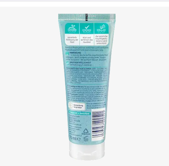 Gel tẩy tế bào chết Balea Peeling giúp làm sạch sâu lỗ chân lông, làm sáng và mịn da, hỗ trợ cân bằng độ ẩm tự nhiên, và các hạt tẩy tế bào chết từ tre nhẹ nhàng loại bỏ tế bào chết và bã nhờn dư thừa.