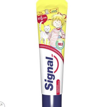 Với Kem Đánh Răng Signal Frucht Geschmack Bis 6 Jahre, răng sữa của trẻ sẽ được chăm sóc nhẹ nhàng, sạch sẽ. Kem đánh răng này được sản xuất với công thức đặc biệt dịu nhẹ không chứa chất tạo bọt SLS, rất an toàn, an toàn với nướu nhạy cảm ở trẻ em.