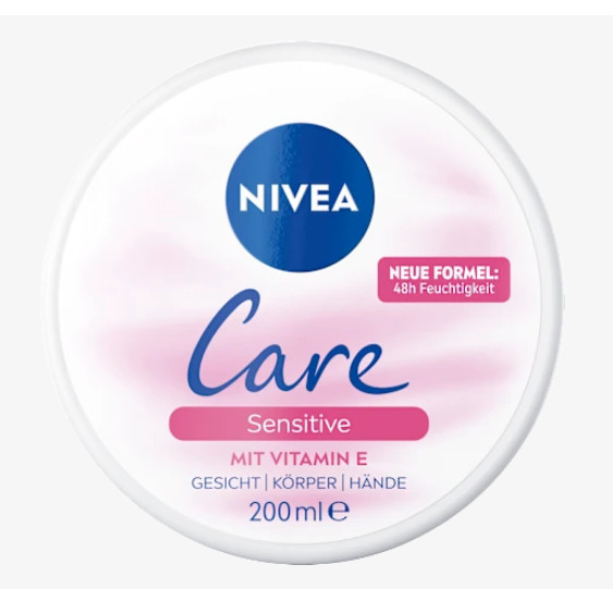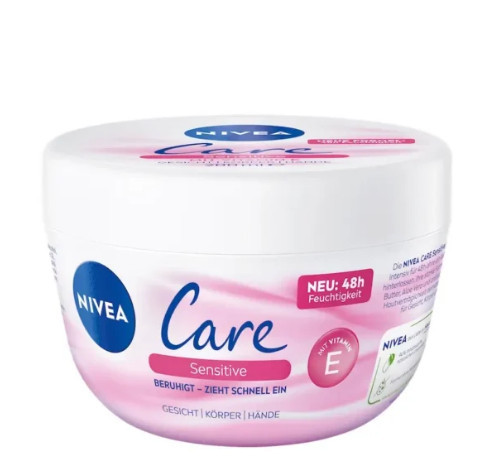 - Kem dưỡng ẩm Nivea Care Sensitive Pflege sử dụng cho da mặt, da tay và da toàn thân.