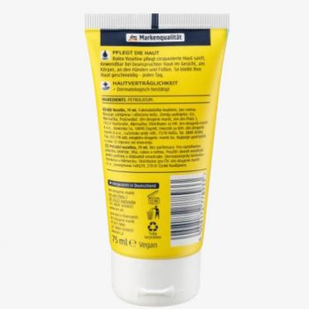 Balea Vaseline dạng tuýp nhẹ nhàng chăm sóc làn da khô, nứt nẻ. Nó có thể được sử dụng trên vùng da bị nứt nẻ trên mặt, cơ thể, bàn tay và bàn chân. Điều này giữ cho làn da của bạnđược mềm mại mỗi ngày. Với công thức thuần chay và không có mùi thơm. Khả năng tương thích da cũng được xác nhận về mặt da liễu.