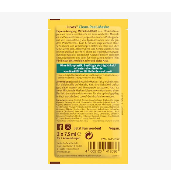 Mặt nạ đất sét Luvos Heilerde Clean-Peel-Maske, 2 miếng