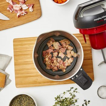 - Máy làm súp Morphy Richards được làm bằng thép không dỉ, nhựa phối 2 màu đen bạc