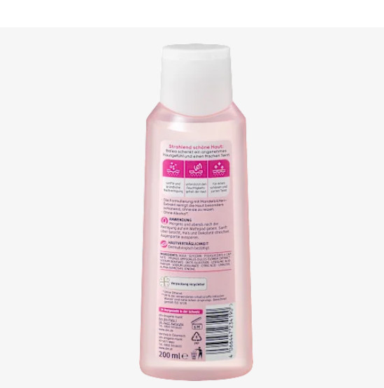 Nước hoa hồng Balea Caring Facial Toner làm sạch da nhẹ nhàng nhưng kỹ lưỡng mang đến làn da mịn màng, tươi sáng. Công thức cân bằng với chiết xuất hoa hạnh nhân làm sạch da đặc biệt nhẹ nhàng mà không gây kích ứng, từ đó duy trì độ ẩm cân bằng. Loại bỏ hoàn toàn các dấu vết của sữa rửa mặt. 99% thành phần được sử dụng có nguồn gốc tự nhiên.