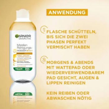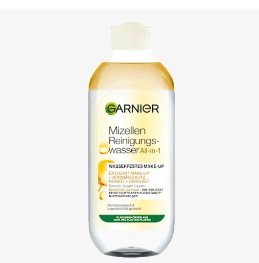 Nước tẩy trang Garnier Micellar Cleansing Water All-in-1 Waterproof giúp loại bỏ hiệu quả lớp trang điểm lâu trôi và chống nước, đồng thời làm sạch da mặt một cách nhẹ nhàng. Các hạt micelle hoạt động như nam châm, hút sạch bụi bẩn và lớp trang điểm khỏi da mà không cần chà xát. Phù hợp với mọi loại da, kể cả da nhạy cảm.