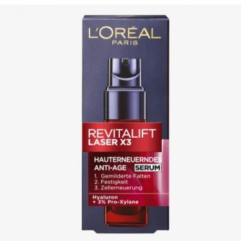 Huyết thanh chống lão hóa Loreal Revitalift Laser X3 Serum hỗ trợ tích cực trong việc giảm thiểu nếp nhăn, săn chắc hơn và cải thiện cấu trúc da. Axit hyaluronic dễ dàng hấp thụ sâu vào da và làm mềm các nếp nhăn. Hoạt chất Pro-Xylane tăng cường các sợi nâng đỡ và nén chúng lại. Ceramide Pro và LHA tinh chỉnh lỗ chân lông. Nước da cải thiện rõ rêt – da đều màu và sáng đẹp hơn.