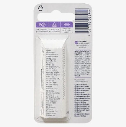Son dưỡng Balea Lip Care Magical Wishes với công thức với bơ hạt mỡ và dầu dừa hữu cơ, mang lại sự mềm mại tinh tế. Chăm sóc và bảo vệ môi khỏi bị khô. Công thức không có vi nhựa và polyme tổng hợp hoàn toàn tan trong nước.