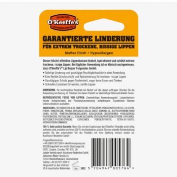 Son dưỡng môi không mùi O’Keeffe’s Lip Repair giúp dưỡng ẩm và nuôi dưỡng, đảm bảo cứu trợ cho đôi môi cực kỳ khô, nứt nẻ. Vì lớp màng ẩm linh hoạt bảo vệ môi bạn không bị khô suốt ngày dài. Son dưỡng môi đã được thử nghiệm lâm sàng, không chứa paraben và chứa sáp ong và bơ hạt mỡ nhiều dưỡng chất