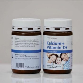 - Mỗi Sanct Bernhard Calcium Vitamin D3 chứa 160 mg canxi và 1 g vitamin D3(tương đương 40 IU). Vì vậy, bạn có thể tùy theo nhu cầu canxi của mỗi thành viên trong gia đình mà sử dụng liều lượng tương ứng.