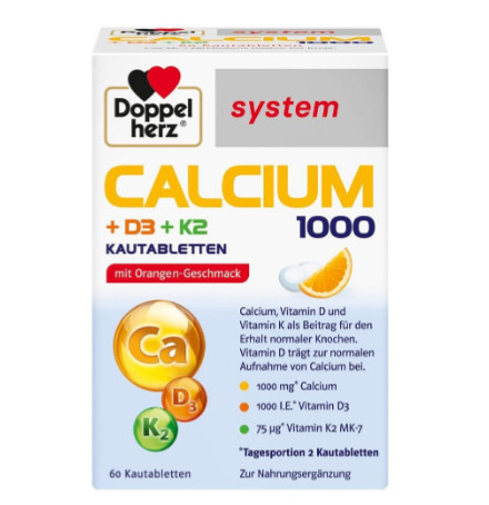 Loãng xương, đau nhức khớp hay thiếu hụt canxi đang ảnh hưởng đến sức khỏe của bạn? Doppelherz System Calcium 1000 D3 K2, sản phẩm chính hãng nội địa Đức từ thương hiệu Doppelherz, là giải pháp tối ưu giúp bổ sung canxi, hỗ trợ xương và răng chắc khỏe, đồng thời ngăn ngừa loãng xương hiệu quả. Với dạng viên nhai vị cam thơm ngon, sản phẩm dễ sử dụng và được tin dùng tại hơn 70 quốc gia.