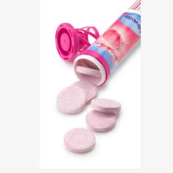 Có chất tạo ngọt. Chất tạo axit citric, chất điều chỉnh độ axit natri bicarbonate, chất tạo xốp sorbitol, hương liệu, tinh bột ngô, chất tạo ngọt natri cyclamate và natri saccharin, bột củ dền, màu riboflavin, cyanocobalamin (vitamin B12).
