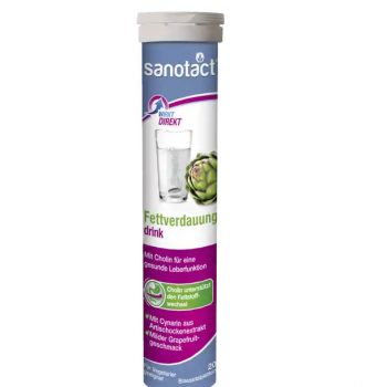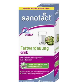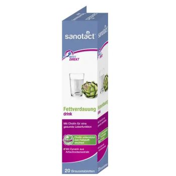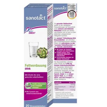 Viên sủi bọt uống tiêu hóa chất béo sanotact ® có chứa choline và do đó hỗ trợ quá trình chuyển hóa chất béo bình thường và chức năng gan bình thường. Viên nén sủi bọt chứa chiết xuất từ 5.400 mg quả atisô tươi mỗi liều hàng ngày. Atisô được sử dụng trong các món ăn nhẹ vùng Địa Trung Hải và được biết đến với hàm lượng cynarin. Choline là một chất nội sinh tham gia vào quá trình vận chuyển cholesterol và chất béo.