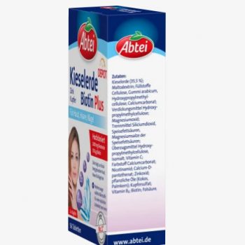 Mái tóc khỏe và làn da đẹp có thể là một yếu tố thực sự tốt cho bạn . Làm thế nào tốt mà chăm sóc bên ngoài của bạn có thể được hỗ trợ từ bên trong . Abtei Silica Biotin Plus kết hợp silica với các chất dinh dưỡng quan trọng để làm đẹp từ bên trong . Điều đặc biệt về Abtei Siliceous Earth Biotin Plus là hiệu ứng dự trữ , giải phóng các chất dinh dưỡng cho cơ thể trong vài giờ, do đó đảm bảo cung cấp liên tục các vi chất dinh dưỡng quan trọng cho cơ thể