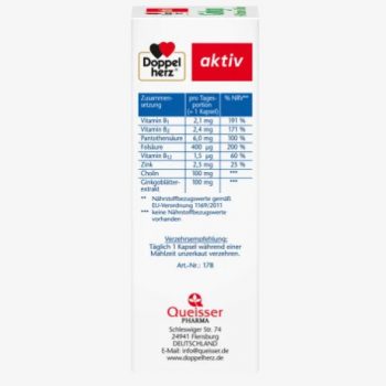 - Ginkgo Doppelherz Aktiv chứa Vitamin B2. Đóng một vai trò quan trọng trong việc chuyển hóa năng lượng bình thường và chức năng bình thường của hệ thần kinh. Giúp bảo vệ các tế bào khỏi quá trình ôxy hoá.