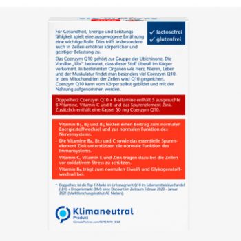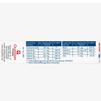 Ngoài ra , thuốc bổ tim mạch Doppelherz Coenzym Q10 còn chứa các vitamin nhóm B. Giúp tăng cường quá trình chuyển hóa năng lượng và giảm mệt mỏi.