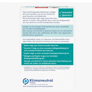 Viên uống Doppelherz Kollagen 900 Hyaluron Q10 bổ sung collagen thủy phân, vitamin, nguyên tố vi lượng và coenzym Q10 .