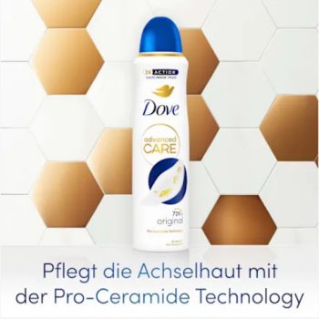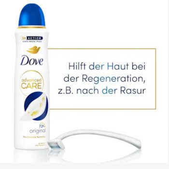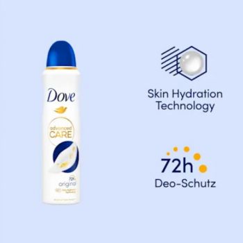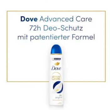 Xịt khử mùi và dưỡng da Dove Advanced Care Original, sản phẩm khử mùi 72 giờ giúp vùng da dưới cánh tay mịn màng và bảo vệ chống mồ hôi và mùi cơ thể.