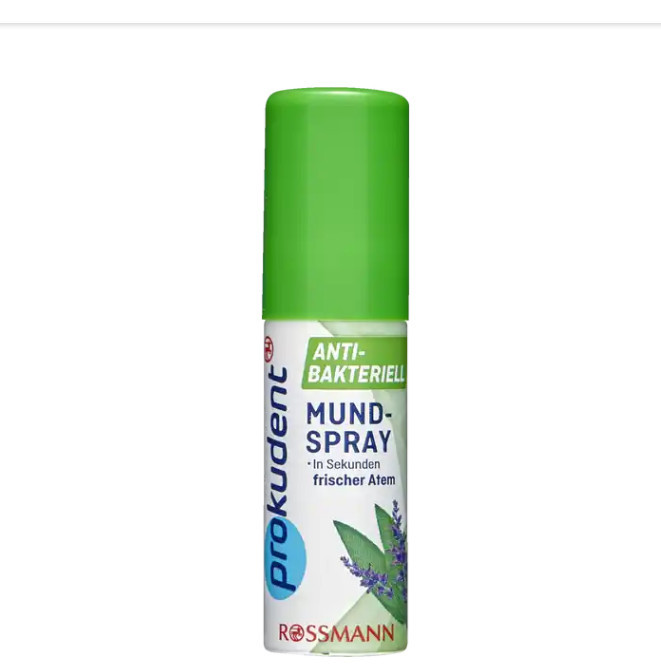 Xịt thơm miệng Prokudent Mundspray với thành phần chiết xuất từ thảo dược như bạc hà, cam thảo… giúp khử mùi và diệt khuẩn một cách triệt để, là sản phẩm lí tưởng để khử mùi thức ăn, mùi hôi miệng, dùng xịt trực tiếp vào trong khoang miệng bất kì lúc nào bạn thấy có mùi khó chịu hoặc cảm giác khô khan từ miệng. Không chỉ khử mùi, còn giúp khử khuẩn khoang miệng và cổ họng, ngăn ngừa các bệnh về răng miệng hiệu quả.
